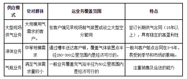 表(biao) 工業氣體供(gòng)貨方式的特(te)性