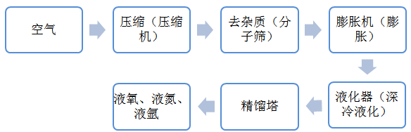 圖(tú)1 空分裝置簡(jian)單生産加工(gōng)生産工藝流(liú)程